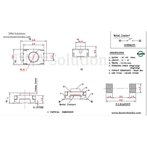 Explore the complete collection of SMD switches available at DNA Solutions. The KFC332 serves well in applications where space and reliability are crucial. Perfect for hobbyists and professionals alike, this switch enhances the functionality of your electronic designs.
