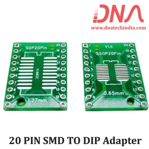 Side one supports pitch size 0.65mm. It can be used for most of the MSOP20, SSOP20 and TSSOP20 packages. Side two supports pitch size 1.27mm. It can be used for most of the SO20, SOP20 and SOIC20 packages.