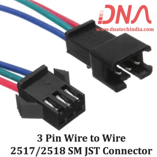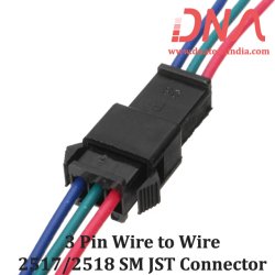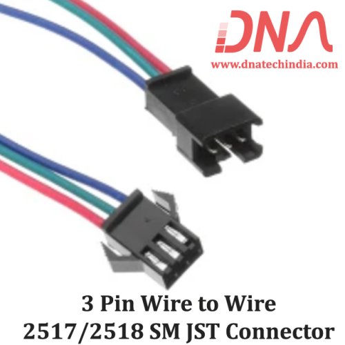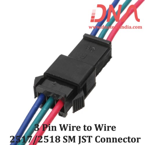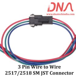 The JST SM 3 Pin Wire to Wire Connector - 2517/2518 Series offers a reliable connection for various electronic projects. This connector features a 2.54mm pitch and comes with a 120mm wire length, making it ideal for LED connections and wiring harness applications. With a voltage rating of 250 Volts and a current rating of 3 Amperes, it ensures safe and efficient power transfer. The connector includes a male and female plug for easy installation.