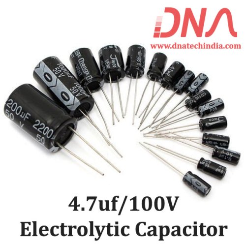 This is a 4.7uf, 100 volt (4.7uf/100v) radial polarized good quality Electrolytic capacitor. Electrolytic capacitors are widely used in power supplies, switched-mode power supplies and DC-DC converters. This capacitor has long life, low leakage current and wide operating range.