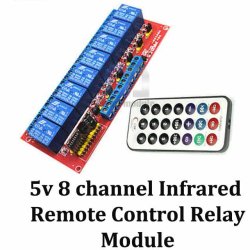 Constructed with a good capacity for resisting disturbances, this relay module supports large currents safely. The adjustable input control and built-in indicator light make it user-friendly and versatile for various applications. Ideal for home automation, remote control projects, and robotics, the 5V 8 Channel Infrared Remote Control Relay Module serves as a robust solution for electronic enthusiasts in India.