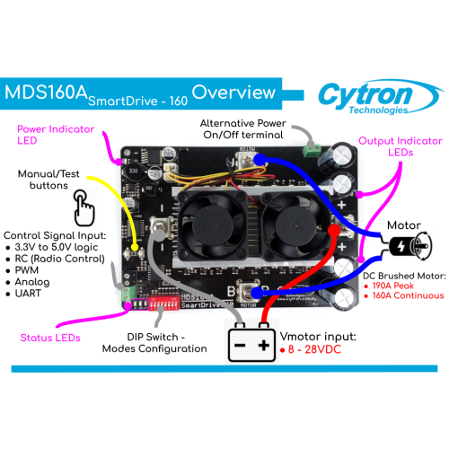 160Amp 8V-28V SmartDrive DC Motor Driver