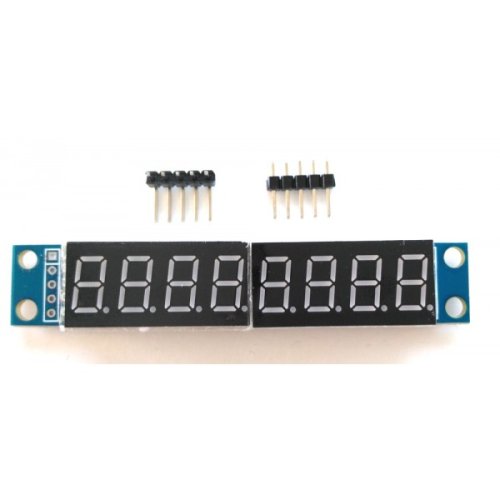 This 8 digit seven segment display module is based upon the Maxim MAX7219 LED display driver.