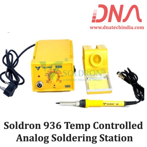 The Soldron 936 Temperature Controlled Analog Soldering Station is designed for precision soldering tasks. With a temperature range of 200 to 480°C, this station offers flexibility for various soldering needs. It features an MCH solid-state element, ensuring reliable performance over 1000 hours. The station is ESD safe, making it ideal for sensitive electronic components. This Soldron 936 Soldering Station is perfect for both hobbyists and professionals in India, seeking quality and durability.
