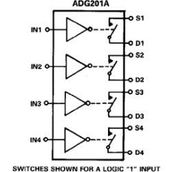 ADG201A is a monolithic CMOS device comprising four independently selectable switches.