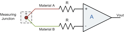 | The three most common thermocouple materials used above for general temperature measurement are Iron-Constantan (Type J), Copper-Constantan (Type T), and Nickel-Chromium (Type K). The output voltage from a thermocouple is very small, only a few millivolts (mV) for a 10oC change in temperature difference and because of this small voltage output some form of amplification is generally required. | ||