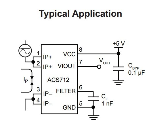 Since ACS712 works on the principal of Hall Effect the terminals of the conductive path are electrically isolated from the signal leads. The sensor provides 2.1 kVRMS isolation voltage between the measuring part and your circuit. Thus ACS712 can be used in applications which require electrical isolation. The IC basically comes in Surface Mount SOIC8 package thus making it very compact to use in your product. It also has just 1.2 mili ohm internal conductor resistance thereby providing low power losses.