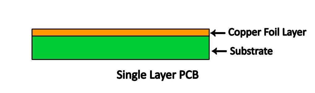 In single sided PCB there is only one layer of copper foil and one layer of substrate. Normally in a single sided PCB there is top side and bottom side. Top side is where through hole components are mounted and the bottom side is where soldering of components leads are done. SMD components are also soldered on bottom side.