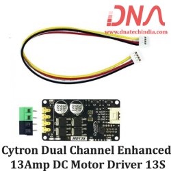 The Cytron Dual Channel Enhanced 13Amp DC Motor Driver MD13S is designed for effective control of brushed DC motors. Operating between 6V to 30V, it provides a continuous current of 13A and a peak current of 30A for brief durations. This driver features a fully NMOS H-Bridge, eliminating the need for a heatsink, ensuring a compact and efficient design. Its GROVE compatibility makes integration straightforward in various electronic projects.