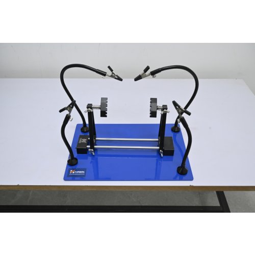 The Deluxe Magnetic Work Bench with PCB Holder is designed for precision soldering tasks. This workbench features a revolving PCB holder with two 360° rotating clamps, providing flexibility in positioning your project. The adjustable gooseneck arms secure various boards up to 150mm wide and 4mm thick, ensuring stability without damaging your components. The coated clamps protect your projects while allowing easy repositioning for optimal soldering angles.