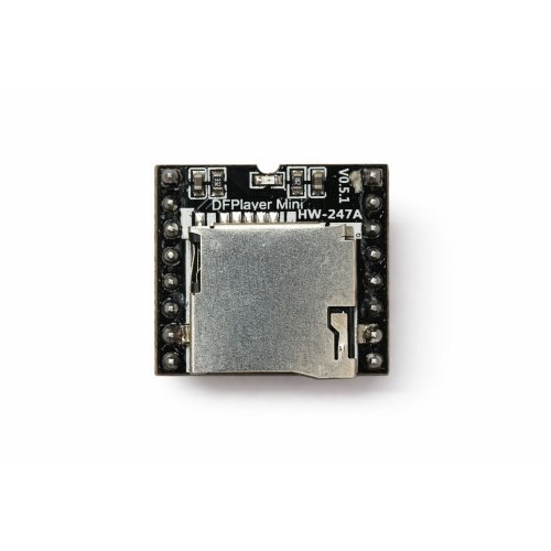 DFPlayer mini MP3 player is a small and low cost MP3 module player with a simplified output directly to the speaker.