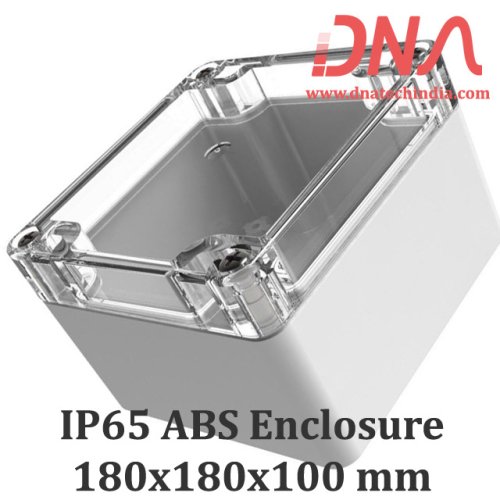 The ABS 180x180x100 mm IP65 Enclosure with Transparent Top is designed to protect sensitive electronic components from dust and moisture. With an IP65 rating, this enclosure is ideal for both indoor and outdoor applications. The robust ABS plastic base and transparent polycarbonate cover ensure durability and longevity, making it suitable for harsh environments. Its dimensions of 180mm x 180mm x 100mm provide ample space for circuit mounting.