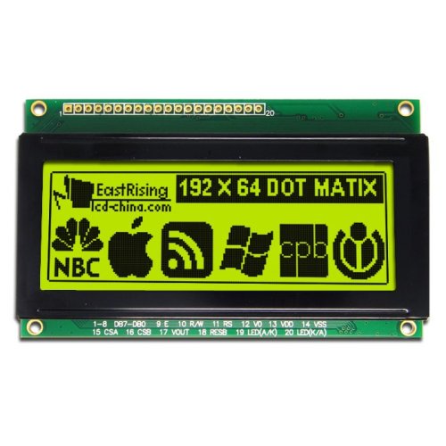The 192 x 64 Green GLCD offers clear white text on a green background. This display features a parallel 8-bit interface, making it suitable for various applications. It integrates seamlessly with MCUs like 8051, PIC, AVR, ARDUINO, ARM, and Raspberry Pi, enabling effective control in embedded systems. The KS1080b is ideal for industrial devices, security systems, medical equipment, and handheld devices. With its robust design, it ensures reliable performance and easy integration into your projects. Explore the versatility of the 192 x 64 Green GLCD for your next application.