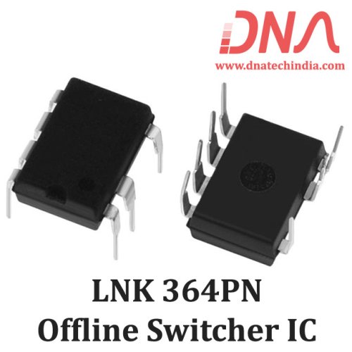 LNK364PN AD-DC offline switcher IC combines a high-voltage power MOSFET switch with a power supply controller in one device. Unlike conventional PWM (pulse width modulator) controllers a simple ON/OFF control to regulate the output voltage. The controller consists of an oscillator, feedback (sense and logic) circuit, 5.8 V regulator, BYPASS pin undervoltage circuit, over-temperature protection, frequency jittering, current limit circuit, leading edge blanking and a 700 V power MOSFET. The LNK364PN AC-DC Off Line Switcher IC incorporates additional circuitry for auto-restart.