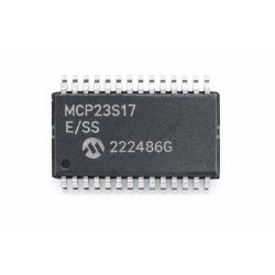 The MICROCHIP MCP23S17-E/SS I/O Expander is a versatile solution for serial communication. It offers 16 bits of I/O expansion for SPI applications. This component features multiple 8-bit configuration registers, allowing you to set input, output, and polarity options easily. The system master can control I/Os as inputs or outputs by setting the I/O configuration bits. With a compact SSOP package, it is ideal for space-constrained designs.