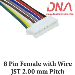The 8 Pin 2.0mm JST Female Relimate Connector is designed for efficient wire-to-board connections. With a 2 mm pitch and a wire length of 28 cm, this connector offers a compact and reliable solution for high-density internal wiring to printed circuit boards. Its design ensures ease of installation and durability, making it ideal for various electronic applications in India.