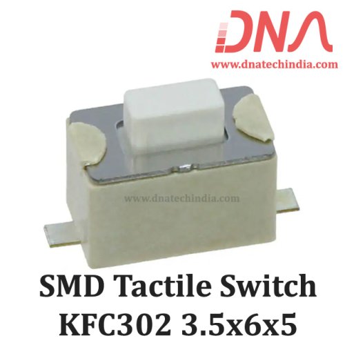 The KFC 302 SPST SMD Tactile Switch is designed for PCB mounting and features a momentary push button function. This tactile switch operates at DC 12V with a current rating of 50mA, making it suitable for various applications such as reset buttons and general inputs. Its compact dimensions of 3.5mm x 6mm x 5mm allow for easy integration into electronic devices.