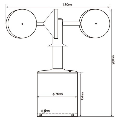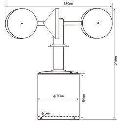 FS-100A uses the traditional three cup. The wind sensor has high quality light metal body which responds to the wind speed the sensor has good wind measuring range, high resolution and accuracy.