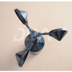 The sensing element of the FS-100A wind speed sensor is a three-cup wind assembly consisting of three carbon fiber cups and cup holders. A multi-tooth rotor is used along with a slit opto-coupler. When the wind cup rotates the multi-tooth rotor also starts rotating and accordingly the opto-coupler outputs pulse signal. The pulses generated is proportional to the wind speed.