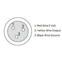 The Sensor has a 3-core aviation plug at the bottom, and the output is three-wire